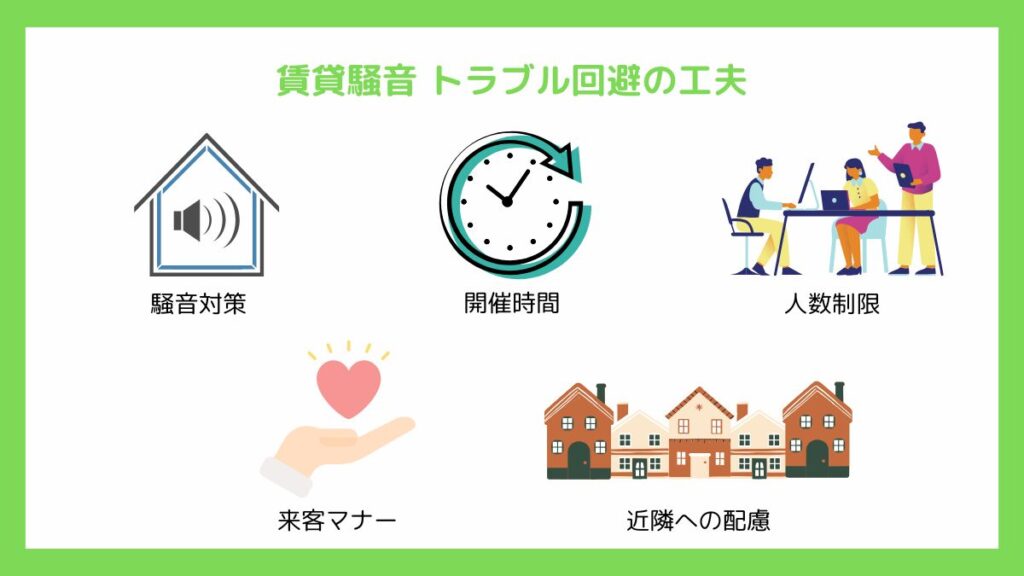賃貸物件でパーティを行う場合、最大のリスクは近隣とのトラブルです。せっかくの楽しい時間も、クレームや管理会社からの注意で台無しになりかねません。ここでは、安心して開催するための工夫を紹介します。