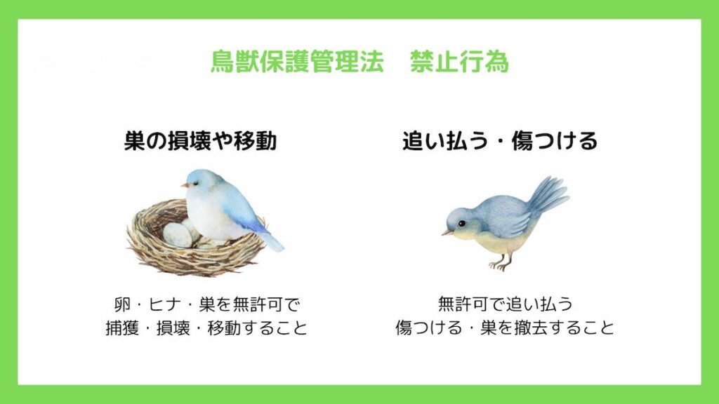 野鳥やその卵・ヒナ・巣を無許可で捕獲・損壊・移動すること