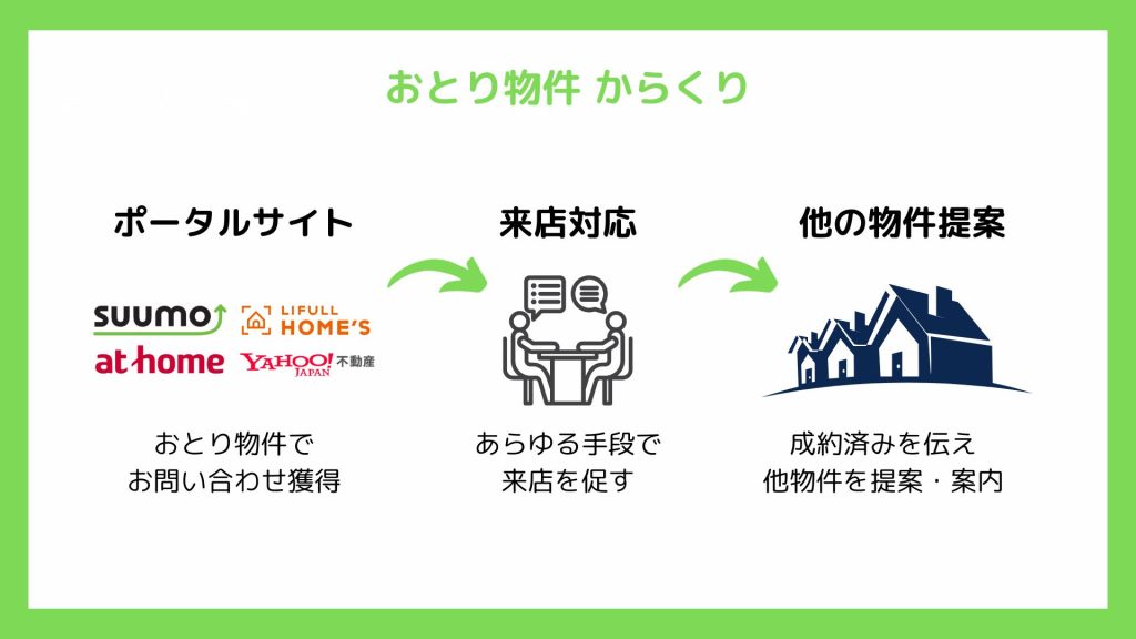 おとり物件とは、 実際には存在しない、または成約済みなのに掲載を続けている物件 のことです。