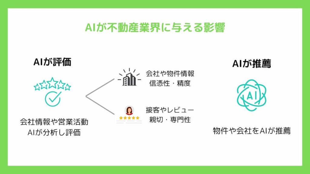 これにより、ユーザーに紹介される会社や物件は、AIの評価基準を満たしているかどうかで決まるケースが増えています。