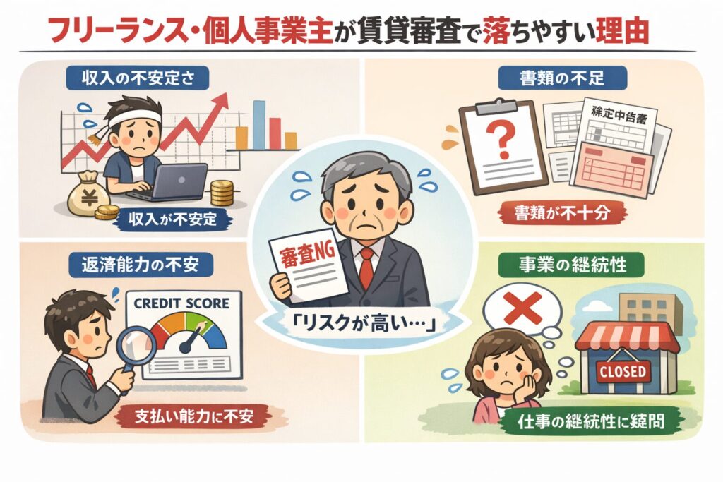 フリーランス・個人事業主が賃貸審査で落ちやすい理由